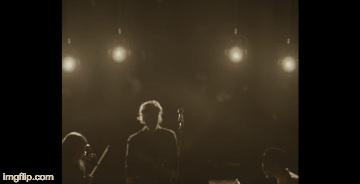 6-14 : Fade out of black to a midshot of the band, lights build in intensity with footstomps till singing begins, camera zooms into the lead singer has he walks to the mic, lights turn blue.